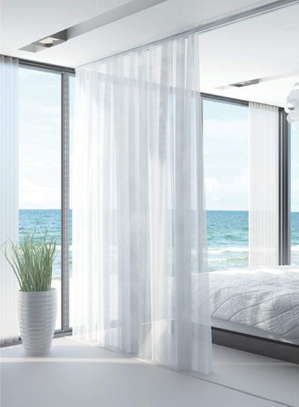 The range of material colours are designed to coordinate, so if you are installing a double track curtain with a Sheer on the front track and a Blockout material on the rear track we have colours to match, compliment or even contrast depending on your taste.