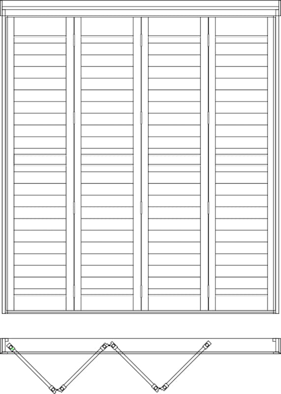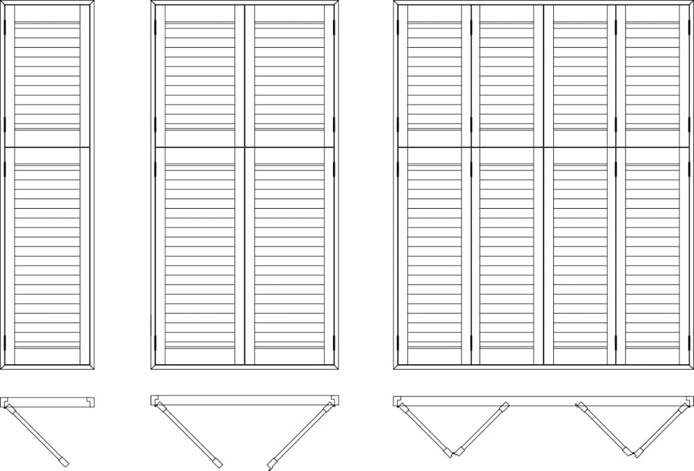 Bi-Fold Shutters: Frame installation options are: Boards with Rebated Track, Track - No Bottom Board, or No Bottom Board or Track. Panel widths up to 550mm*. Only available with 64 and 89mm Louvres. Even panel quantities only (as opposed to odd). When Bi-Fold Shutters stack left and right the centre panel stiles have a Rabbet style connection to block light etc.