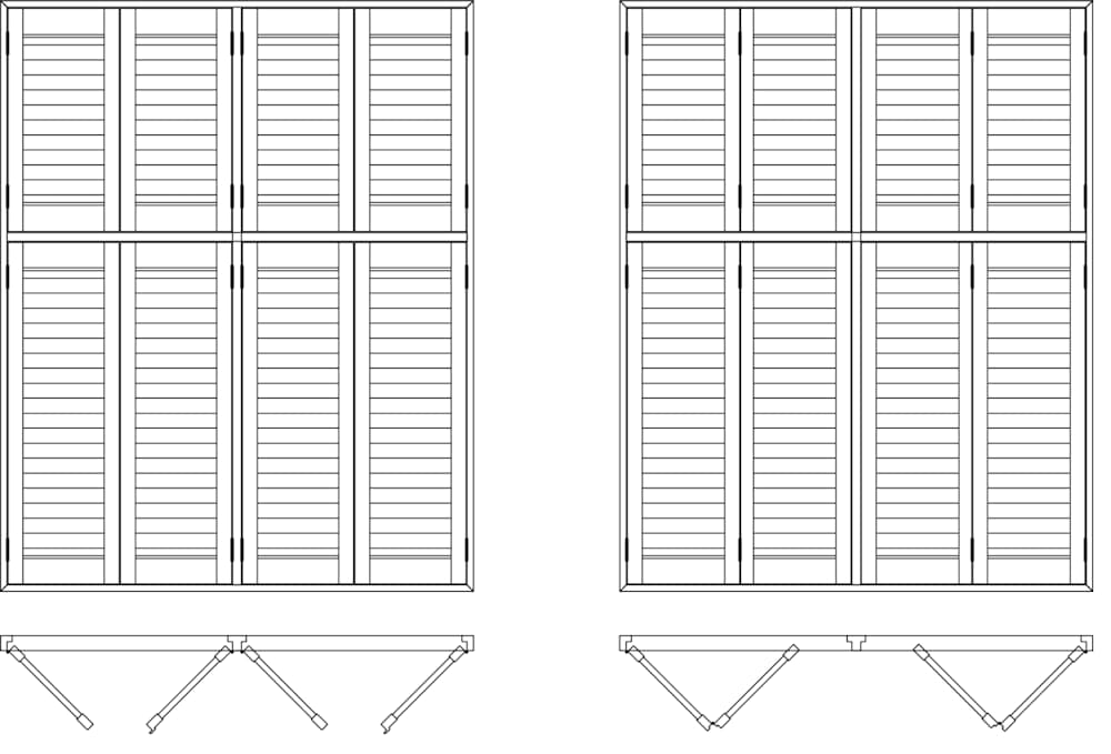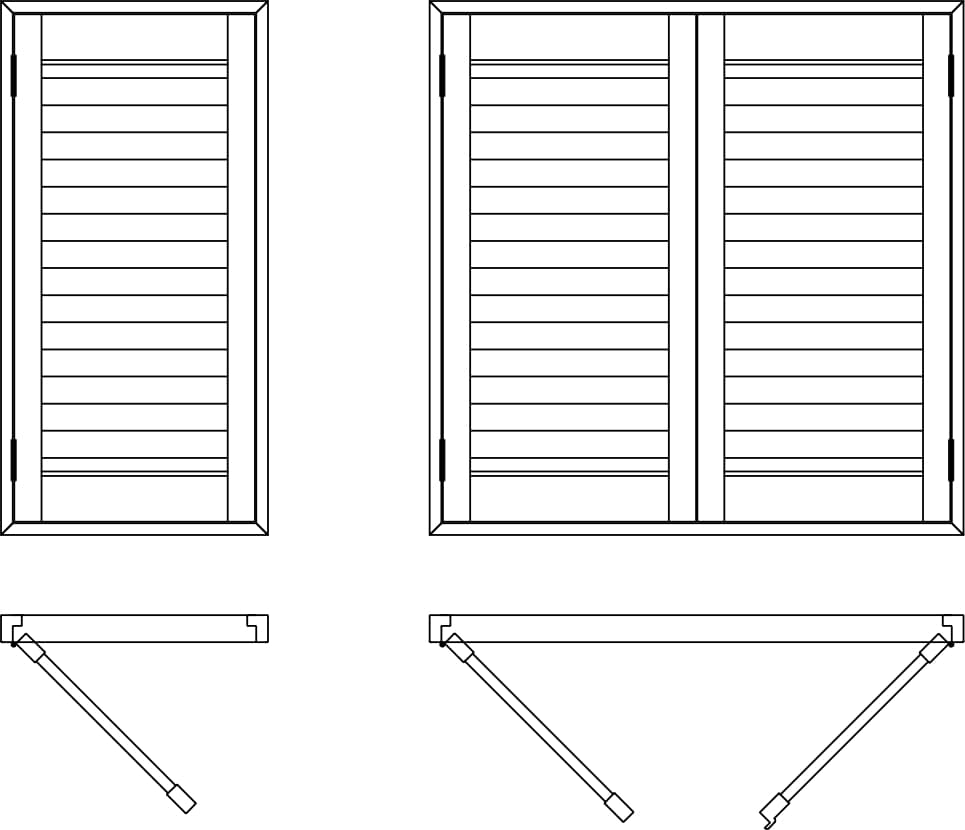 Double Hinged Shutters reduce the shutter opening radius and are available in panel widths from 500mm up to 550mm, depending on the shutter type selected.