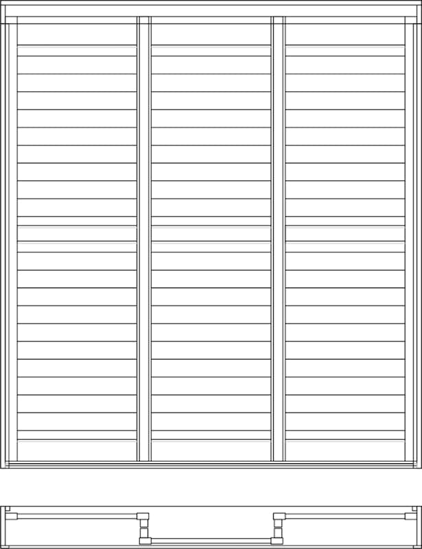 Sliding Shutters: Frame installation options are: Boards with Rebated Track, Track - No Bottom Board, or T-Guide - No Bottom Board. Panel widths up to 950mm*. Only available with 64 and 89mm Louvres. Options for Louvres to be Open or Closed when Sliding.